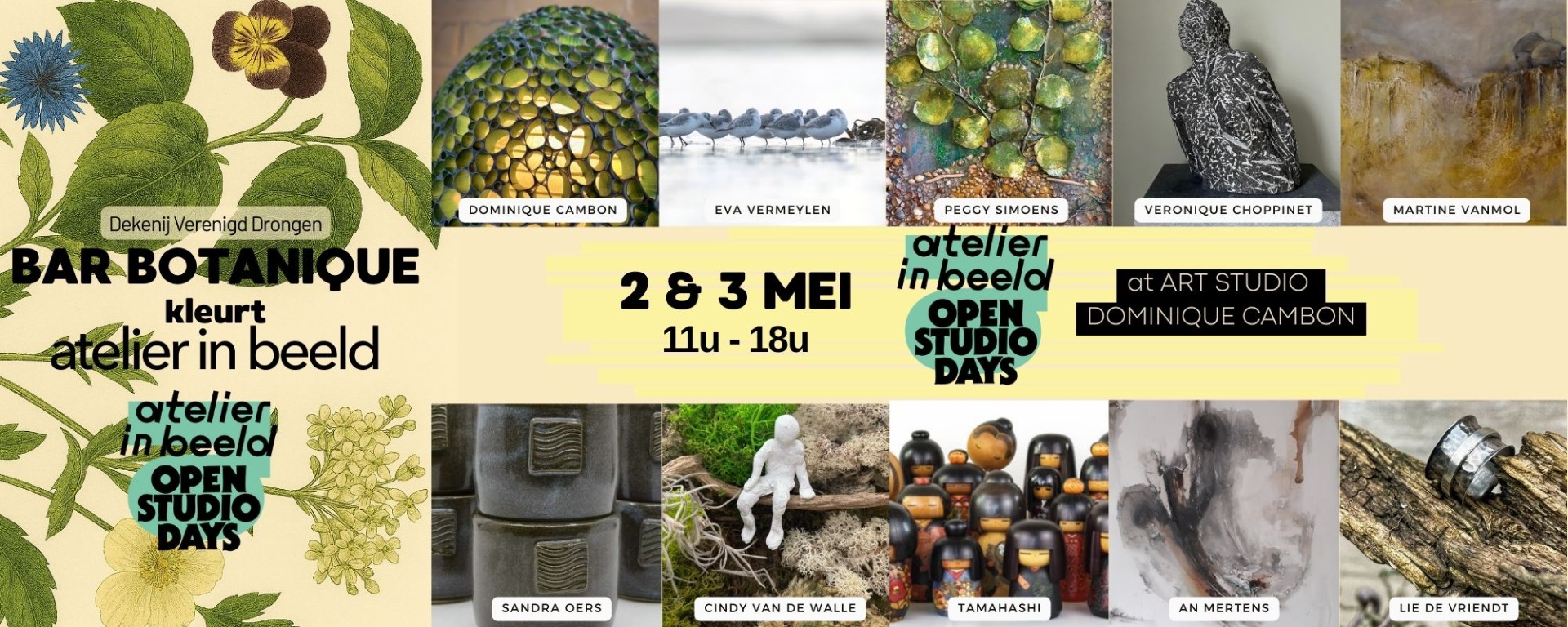 Tijdens het weekend van Atelier in Beeld ontvangen we je graag bij Art Studio Dominique Cambon, waar onze mobiele Dekenijtruck 'De VerDron(g)ken Bar' neerstrijkt als pop‑up Bar Botanique.